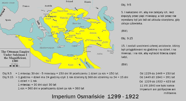 wypełnienie przepowiedni na Imperium Osmańskim. Podane liczby w